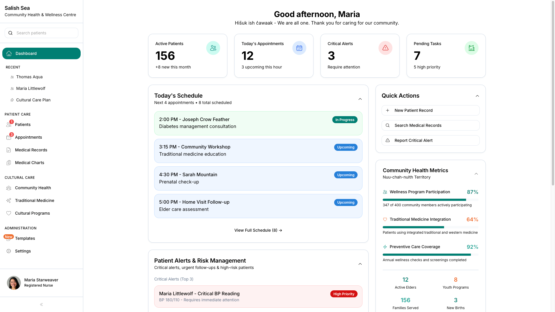 Holistic View: Unified health summary including community programs, cultural practices, and medical care